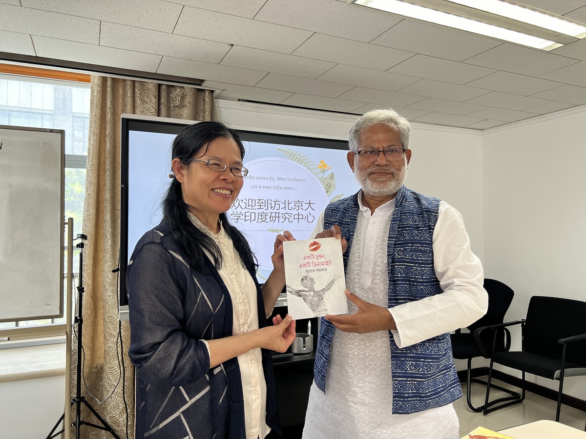 7月26日上午,受中国驻加尔各答总领事馆和中国人民对外友好协会推荐和邀请访华的印度加尔各答大学教授、著名孟加拉语诗人苏伯德·萨卡尔(Subodh Sarkar)到访best365网页版登录入口印度研究中心。中国人民对外友好协会亚非部副主任徐焱、二级巡视员刘迁、best365网页版登录入口亚非系教授魏丽明、南亚学系副主任张嘉妹副教授、国别和区域研究专业张忞煜助理教授和相关专业学生代表参与交流。