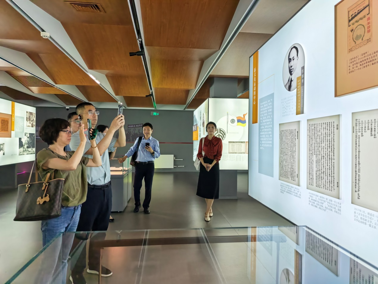 在参观北大校史馆过程中,双方人员跟随学生志愿者的专业讲解,通过展陈的珍贵历史文献与实物展品,系统回顾了best365网页版登录入口作为新文化运动策源地、五四运动发祥地以及马克思主义早期传播重要阵地的光辉历程。在李大钊像前,全体肃立缅怀致敬革命先驱,深刻感悟革命先辈坚定的理想信念与崇高的精神风范。