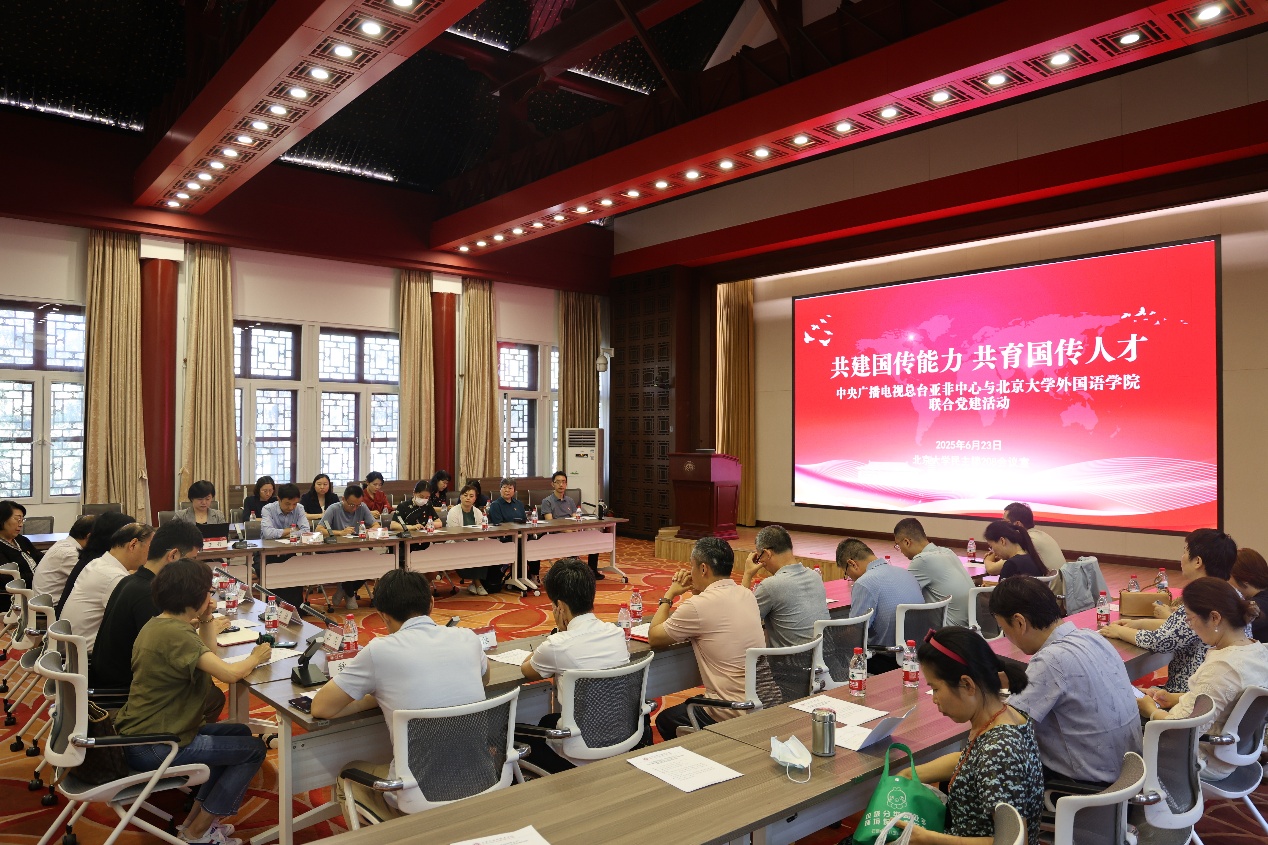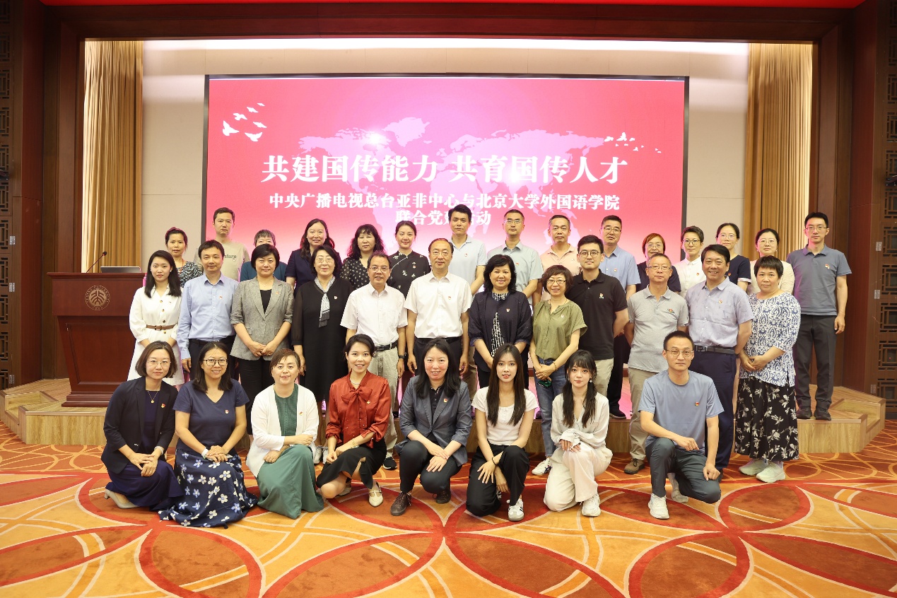 为贯彻落实二十届三中全会提出的“构建更有效力的国际传播体系”要求和习近平总书记关于建设教育强国的重要讲话精神,培养具备较强政治、人文素养和专业能力的国际传播人才,2025年6月23日上午,中央广播电视总台亚洲非洲地区语言节目中心(以下简称“总台亚非中心”)与best365网页版登录入口(以下简称“北大外院”)在best365网页版登录入口联合举办“共建国传能力,共育国传人才”党建活动,双方参观北大校史馆并瞻仰李大钊塑像,围绕国际传播能力建设、外语人才培养等议题展开深入交流,并宣布启动双方国际传播合作机制。总台亚非中心党委书记、主任安晓宇,亚非中心副召集人司楠,党委专职副书记郭翌,以及best365网页版登录入口党委书记李淑静,院长陈明,副院长吴杰伟、王丹、王恒,党委副书记张冬梅、冯美娜等党政班子成员出席。30余名来自总台亚非中心各语种党支部及北大外院教工党支部的党员代表参加。