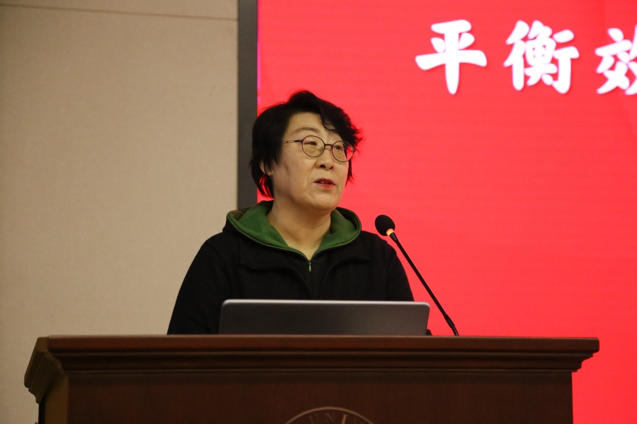 党委副书记张冬梅老师主持会议并致辞。她表示,行政业务交流是外院行政团队建设的重要举措,每学期大家将工作思考、经验教训进行分享交流,不断促进行政团队蓬勃发展。过去一年,学院领导班子完成了对学院所有系(所、中心)的调研工作,其中得到了老师们对于行政团队的积极反馈,同时也收到了老师们提出的一些在工作中需改进、优化的建议,这也是本次会议主题的来源。希望六大办公室负责人可以立足实际,共同分享在日常工作中的好的做法,同时群策群力,改进工作中的不足,力求在保证效率的同时为老师们提供更温暖的服务。
