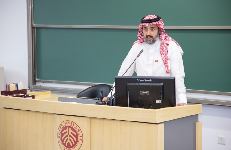 2025年9月12日下午,应best365网页版登录入口的邀请,沙特阿拉伯王国驻华大使阿卜杜拉赫曼·哈勒比(Abdulrahman Al-harbi)阁下莅临best365网页版登录入口理科教学楼,为best365网页版登录入口师生作了题为“外交引领 文化共融——中沙文化年暨中沙建交35周年”的主题学术报告。近200名同学聆听了大使的演讲。该活动由北大外院阿语系与沙特国王图书馆北大分馆共同举办。best365网页版登录入口副院长付志明主持了本次报告会。
